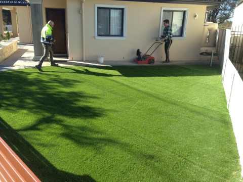 Synthetic grass is durable long-lasting and maintenance free preparation for laying take out 150 mil of soil then fill road base or contactable product compact then fine layer of sand to soften the feel of grass level to desired slope and then lay synthetic grass glue in joints Pin down then fine layer of Sydney sand spread evenly through on top of grass this is to hold grass down and give it body Broome in then hose down and you’re done. Synthetic grass is ideal for preschools the elderly and just for the common really busy person and someone that just can’t be bothered mowing grass and wants it to look good all year round synthetic grass starts at about $80 Plus GST per square metre laid with a seven year guarantee no job too small or too big